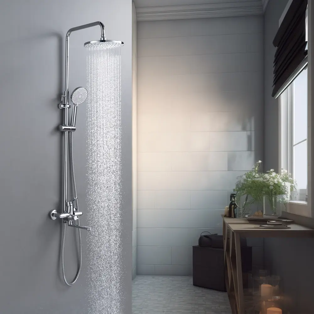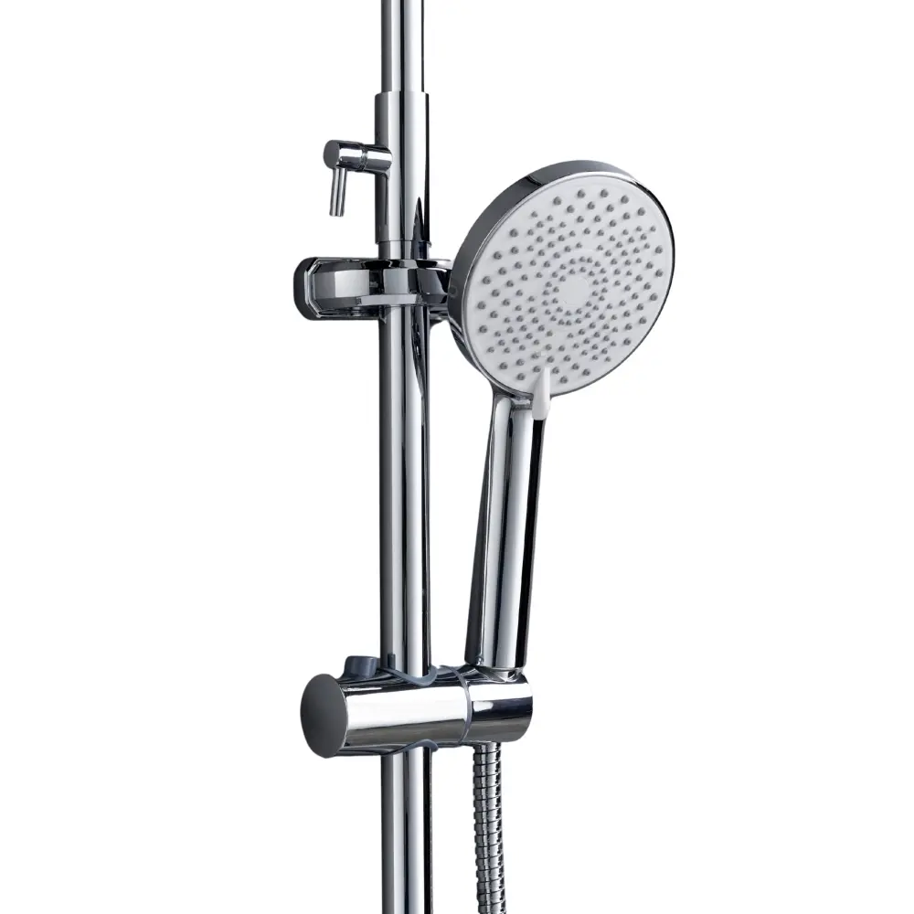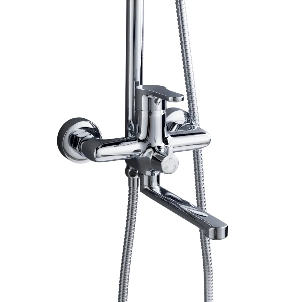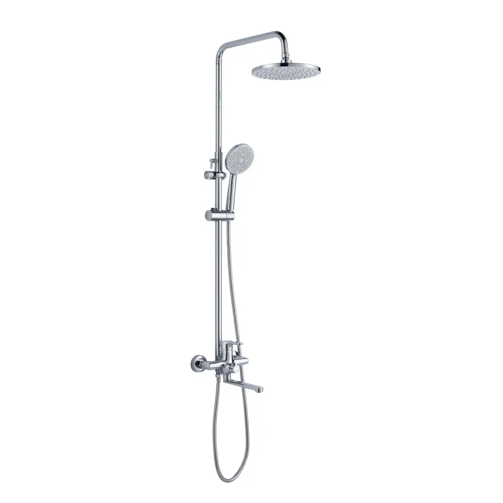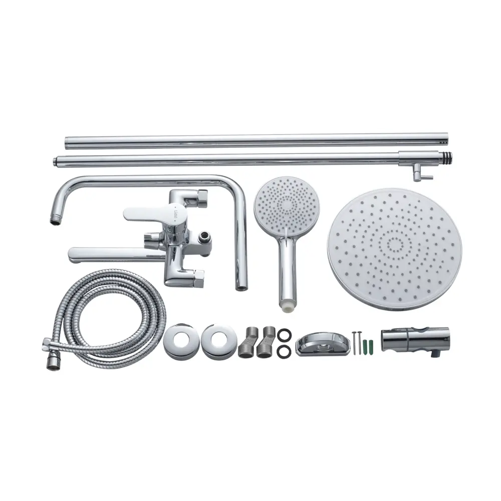 | Комплектація | Душовий шланг, Змішувач, Верхня лійка, Вилив, Декоративні чашки (розетки) – 2 шт, Душова стійка – 3 секції, Ексцентрики (перехідники) – 2 шт, Кріплення для стійки, Ручна лійка, Тримач для ручної лійки, Ущільнювальні прокладки – 2 шт |
