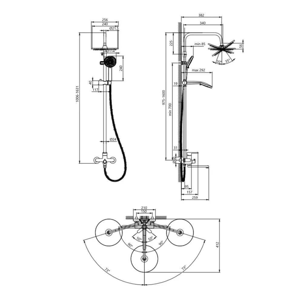 | Довжина кронштейна для верхнього душу, мм | 340 |