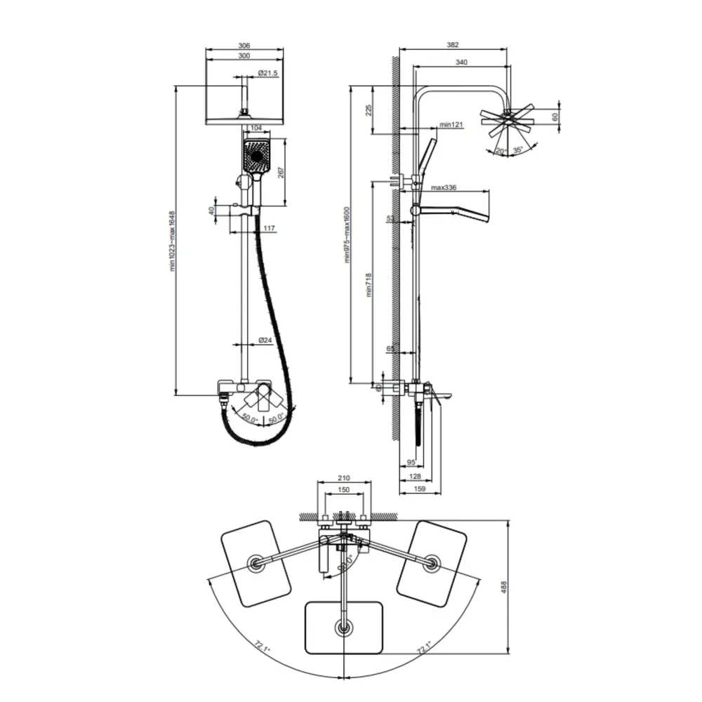 | Диаметр верхнего душа | 300х200 мм |