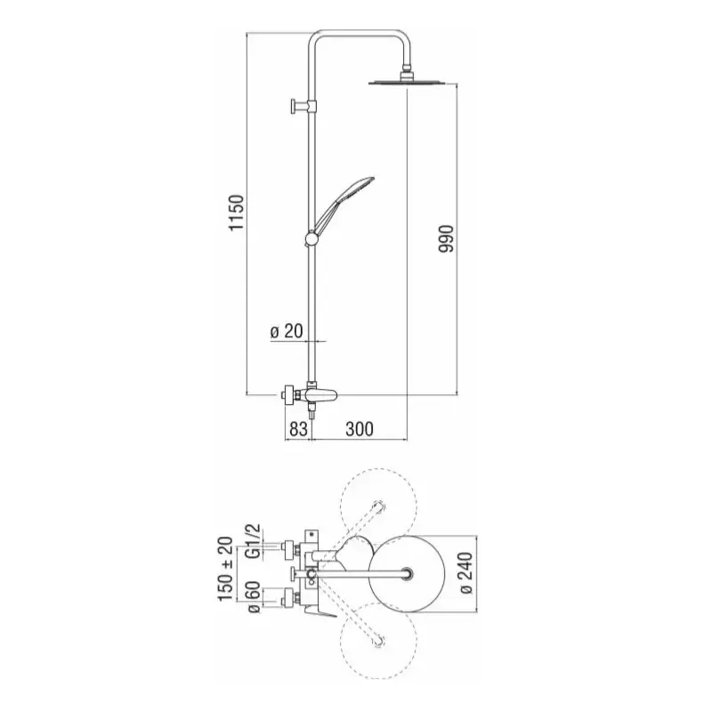 | Комплектація | Верхній душ, Душова стійка, Лейка для ручного душу, Тримач для ручного душу, Душовий змішувач, Душовий кронштейн |
