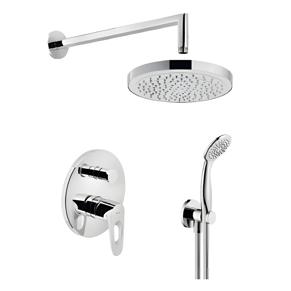 | Комплектація | Верхній душ, Душовий шланг, Змішувач прихованого монтажу, Кронштейн для верхнього душу, Лейка для ручного душу, Тримач для ручного душу |