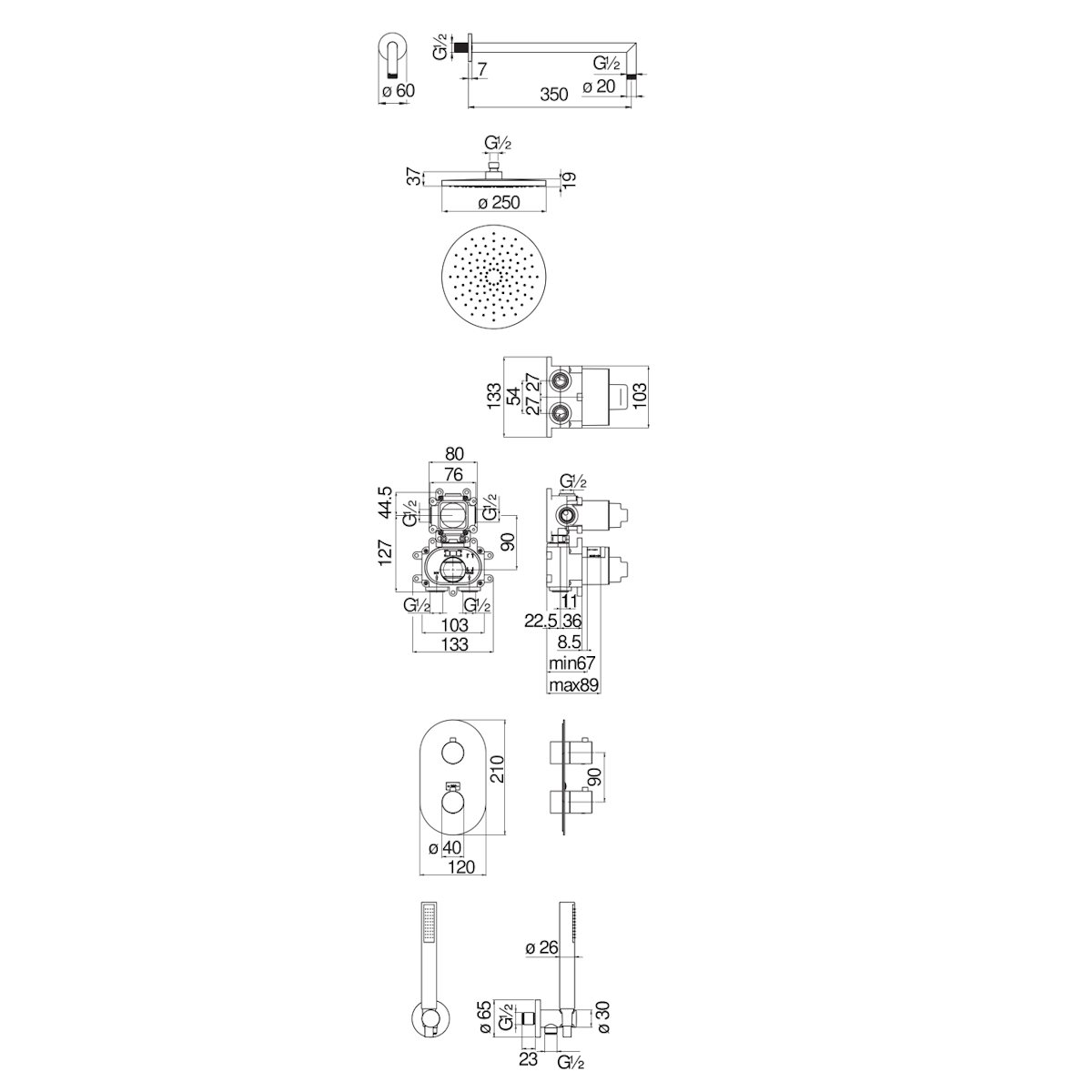 | Довжина кронштейна для верхнього душу, мм | 350 |