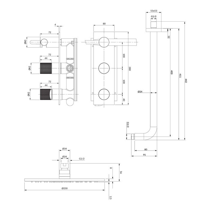 Довжина кронштейна для верхнього душу, мм | 411 |
