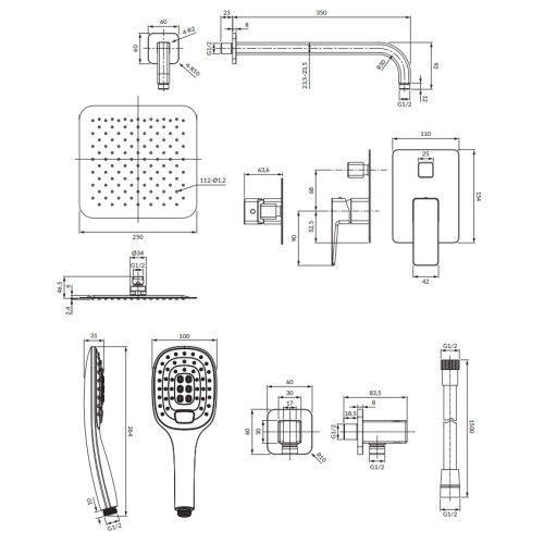 Довжина кронштейна для верхнього душу, мм | 350 |