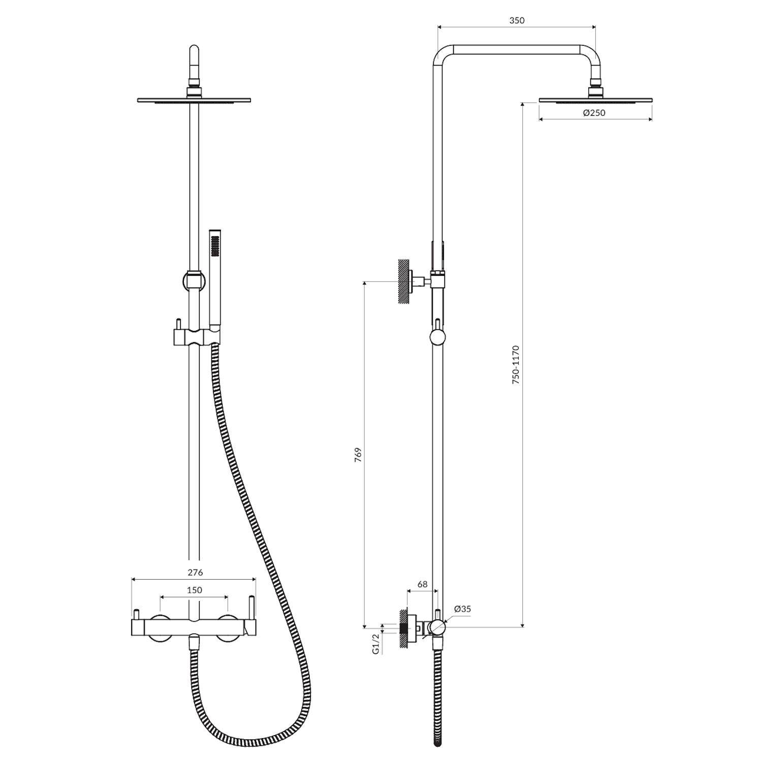 | Комплектація | Верхній душ, Душова стійка, Душовий шланг, Ручний душ |