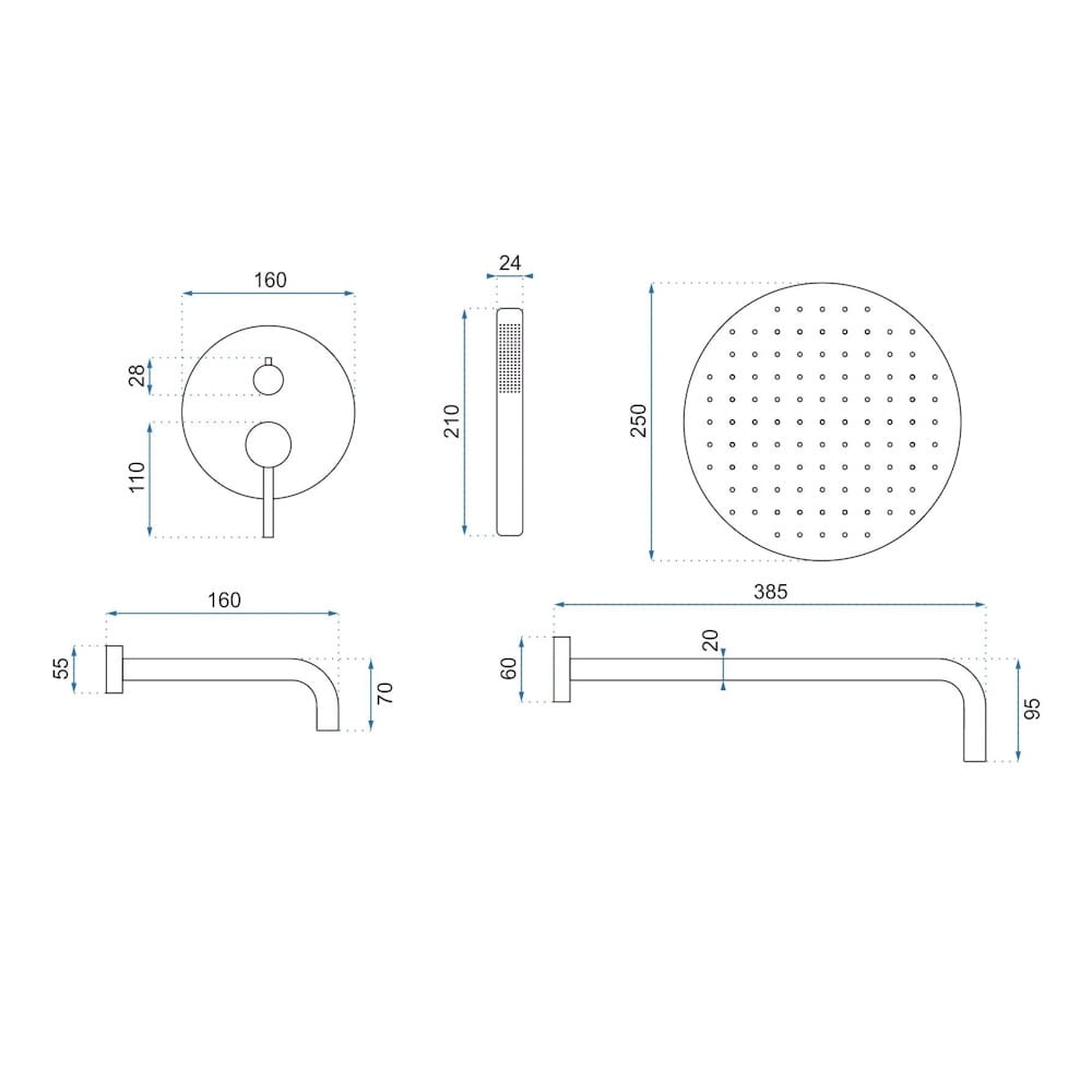 | Форма верхнего душа | Кругла |