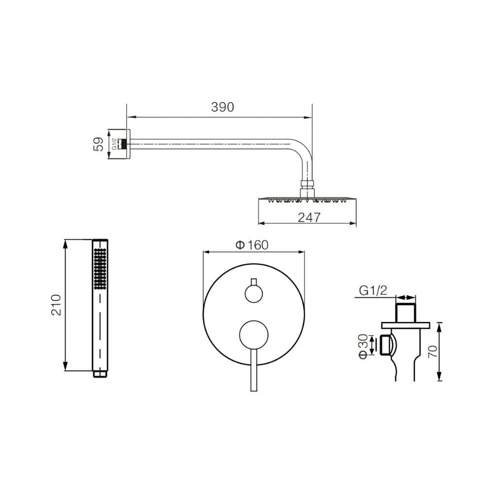 Диаметр верхнего душа | 247×247 мм |