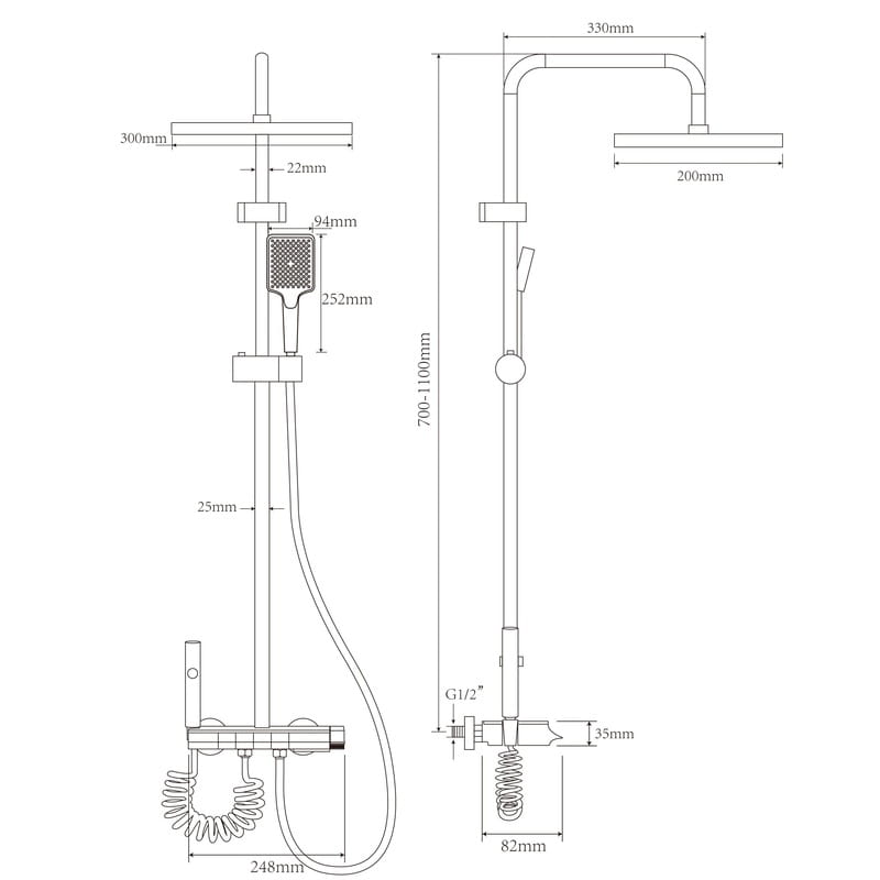 | Довжина кронштейна для верхнього душу, мм | 330 |