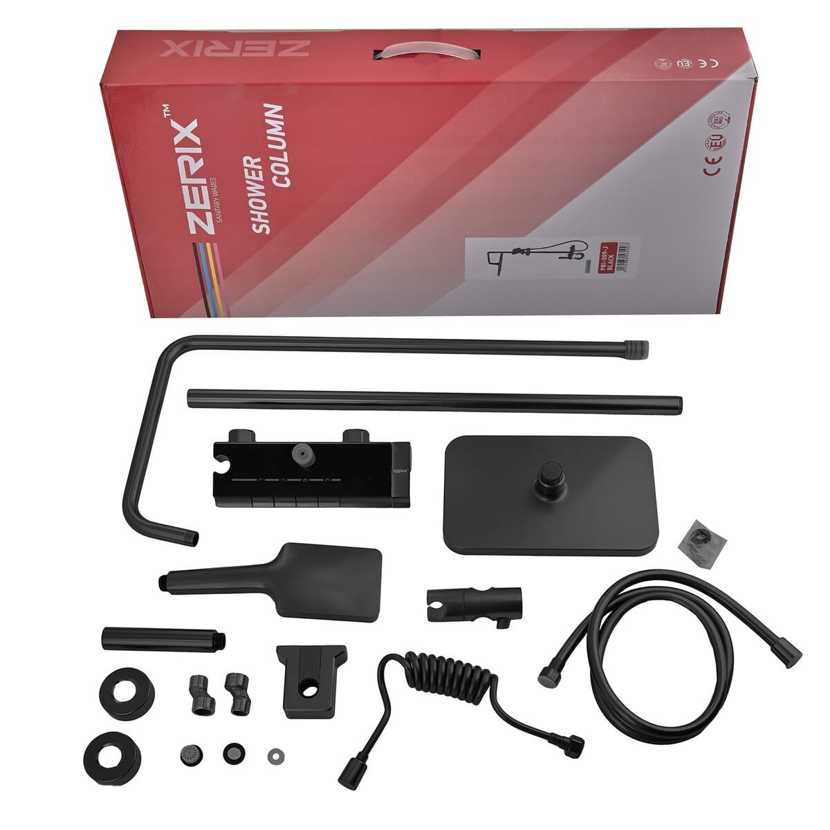Душова система Zerix PBI-009-J з тропічним душем алюмінієва, чорний матовий (ZX5849)