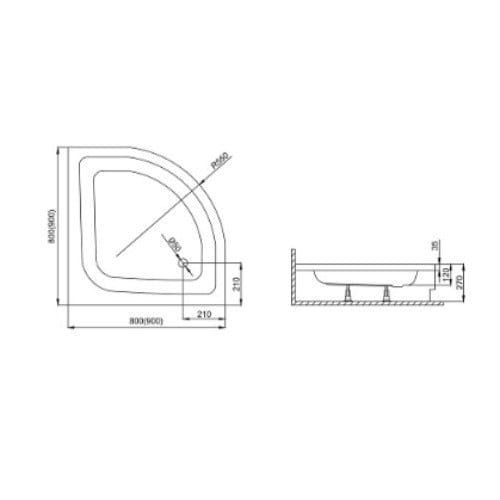 Душовий піддон Armaform 90×90 напівкруглий, білий (210-06948)