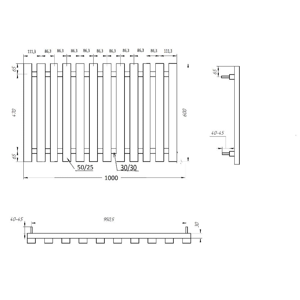Дизайнерський радіатор Genesis Aqua Batteria 600×1000 горизонтальний, чорний матовий
