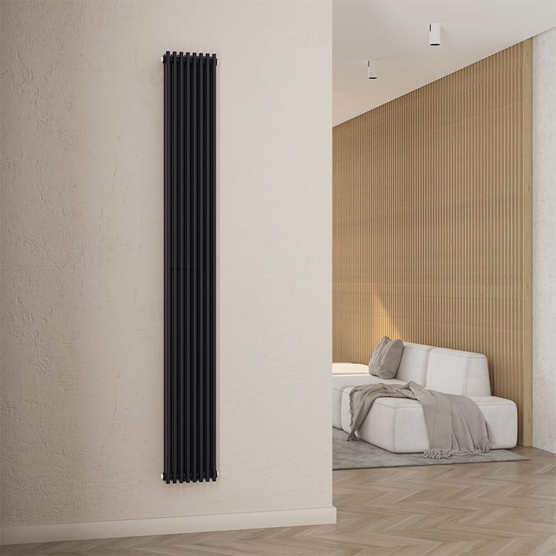 Дизайнерський радіатор IDEALE Giulia 12 1800×224 вертикальний, чорний матовий