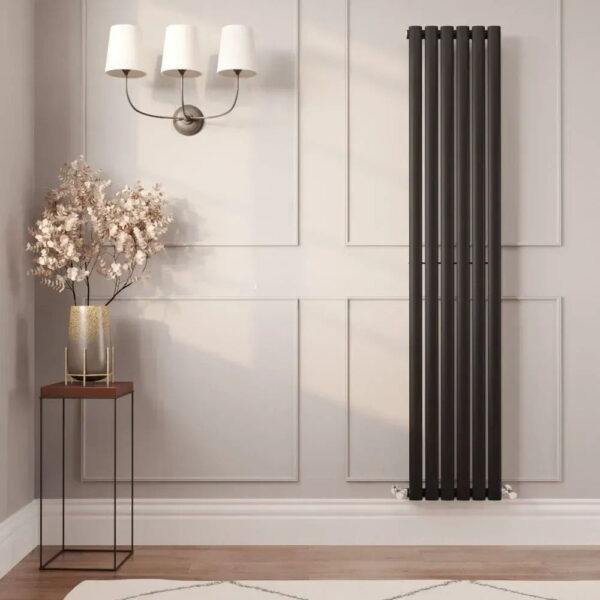 Дизайнерський радіатор Rastas Aurora 1 1400×300 вертикальний, чорний матовий