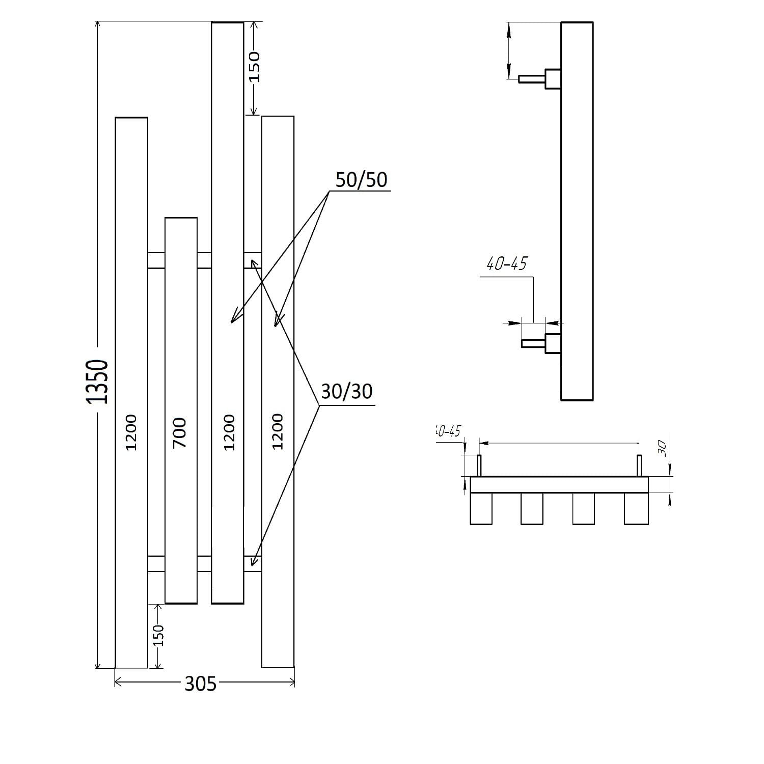 | Ширина рушникосушки, мм | 305 |