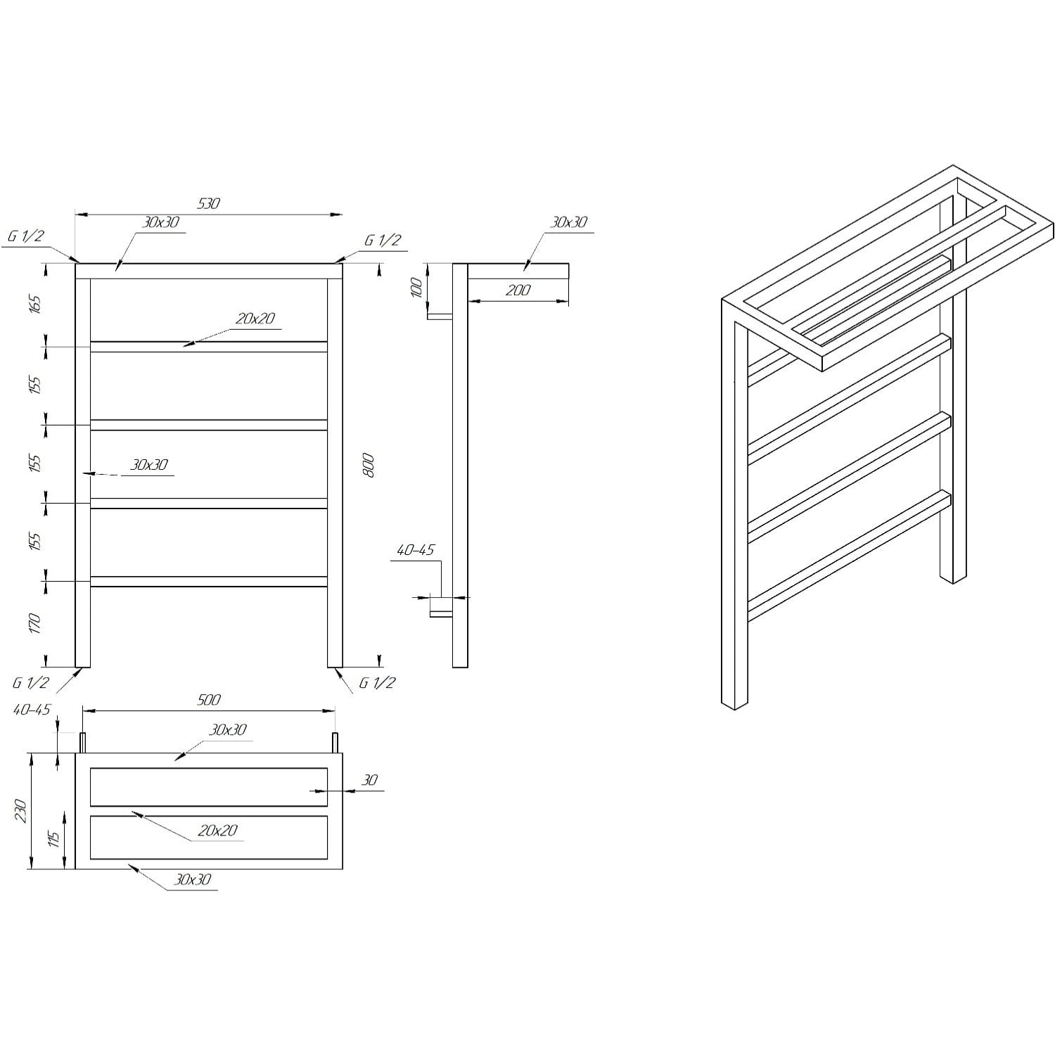 | Висота рушникосушки, мм | 800 |