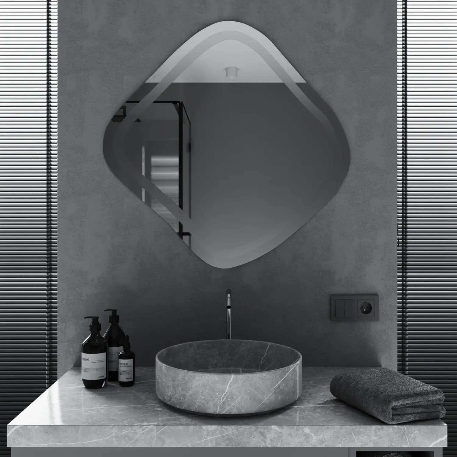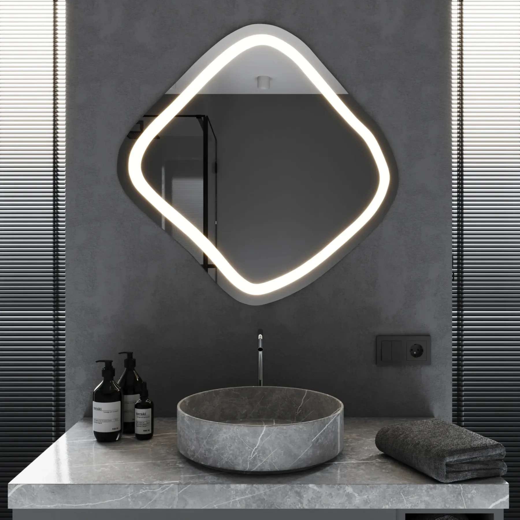 Дзеркало для ванної кімнати Mironiks Ellizium 800×800 фігурне, з фронтальним LED підсвічуванням