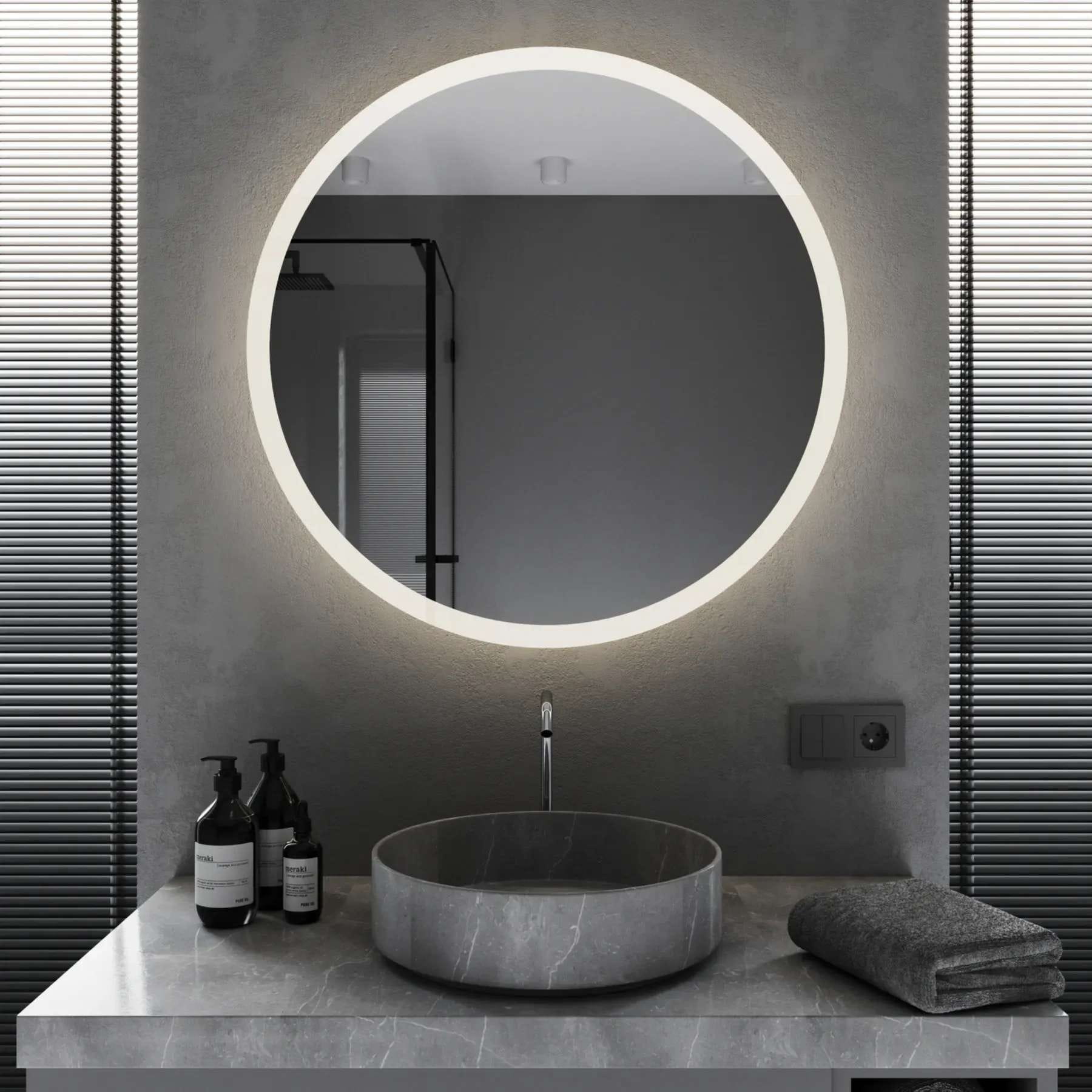 Дзеркало для ванної кімнати Mironiks No Ind 900×900 кругле, з фоново-фронтальним LED-підсвічуванням