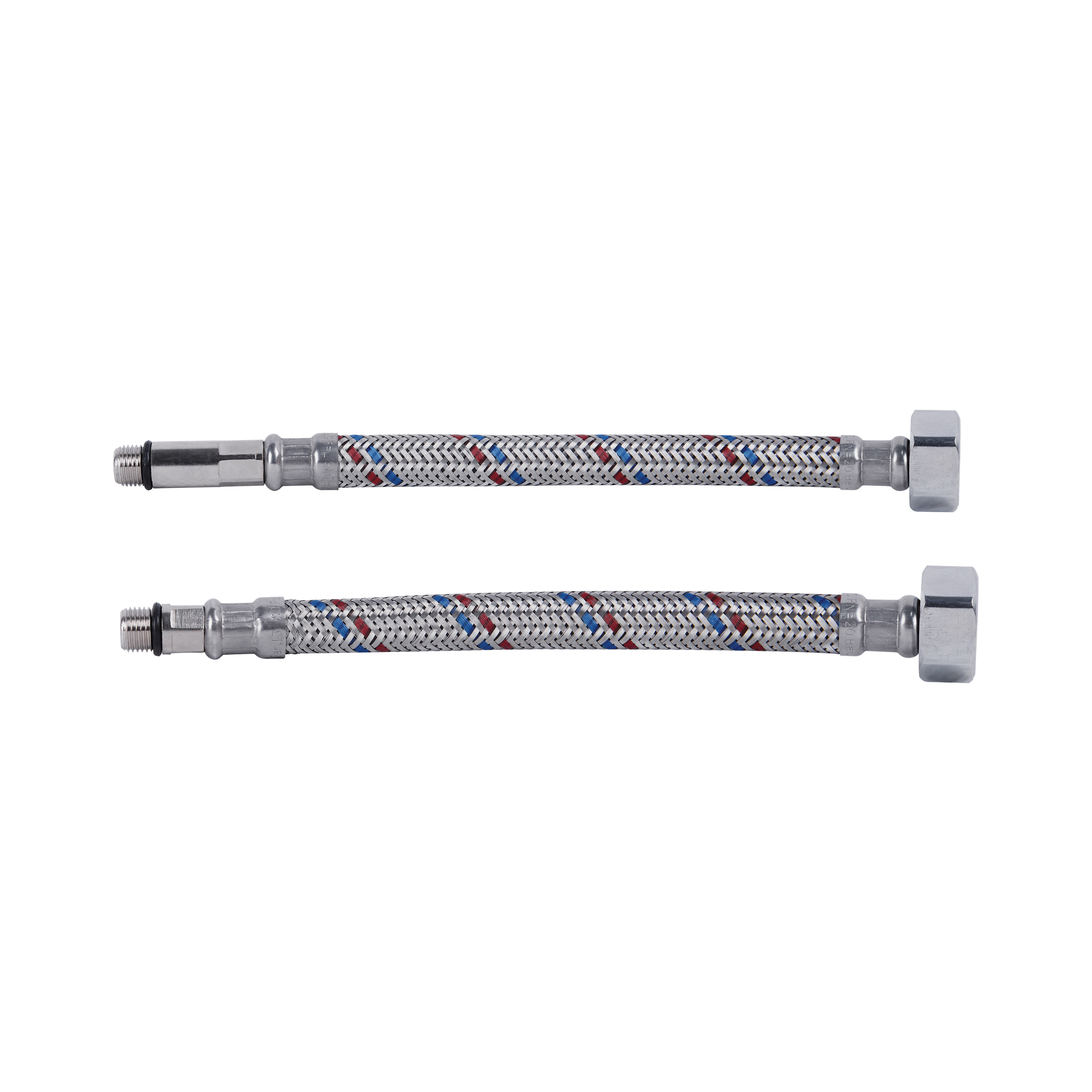 Підключення сантехнічних змішувачів до системи ГХВП найчастіше виконують за допомогою гнучкого підведення для води SD Plus М10 40 см (пара) SD396W40 або аналогічних виробів з іншими розмірами. Довжина підводки – 0,4 м, розмір зовнішньої різьби штуцера – М10, внутрішнє різьблення гайки – 1/2 дюйма. Шланг виконаний з гуми і захований усередині нержавіючого обплетення.