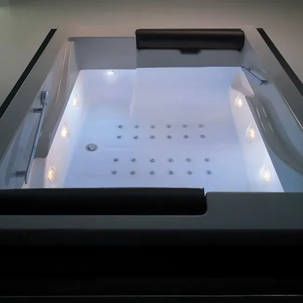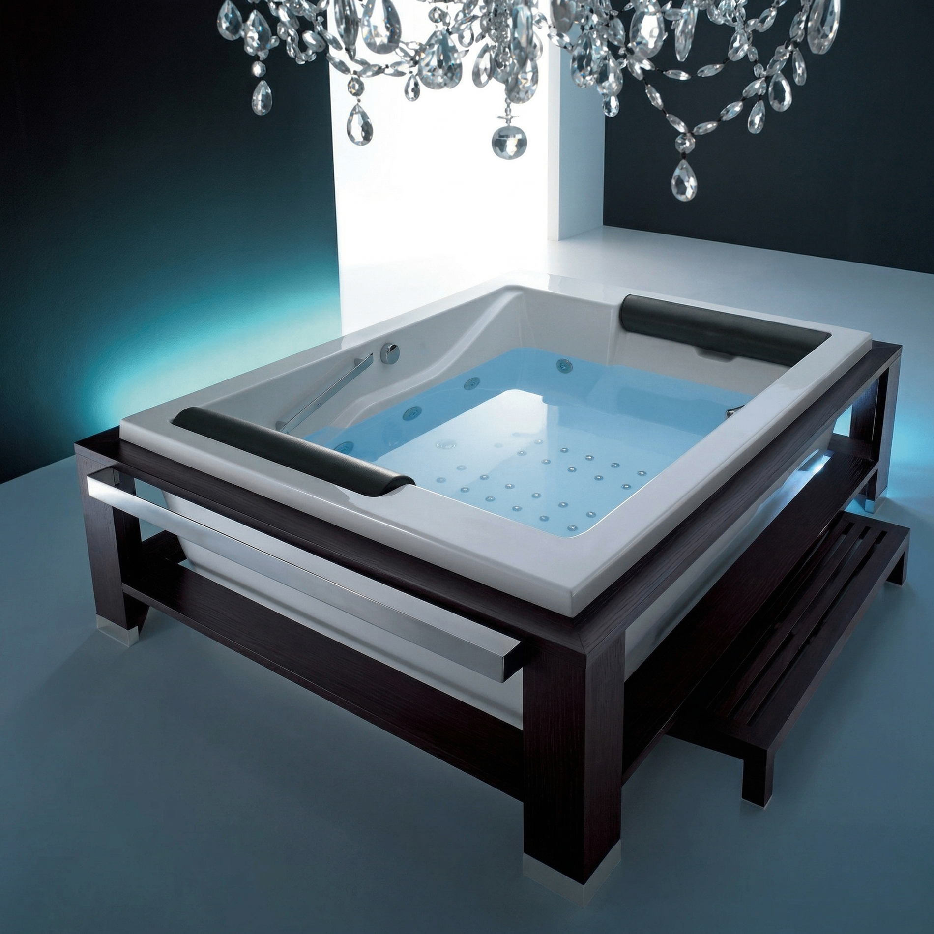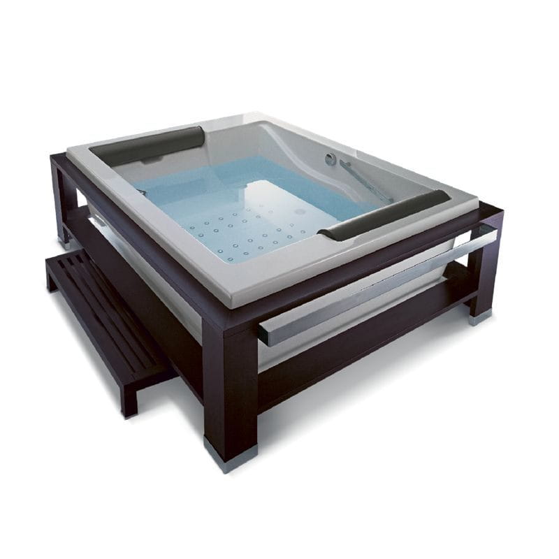 | Комплектація | Ванна, Сифон, Змішувач, Вбудований каскадний вилив, Дерев'яна структура з інтегрованою сходинкою, Набірний змішувач з ручним душем, панель, Підголівники: 2 шт., Сталевий тримач для рушників: 2 шт., Цифрова кнопка ввімкнення/вимкнення системи |