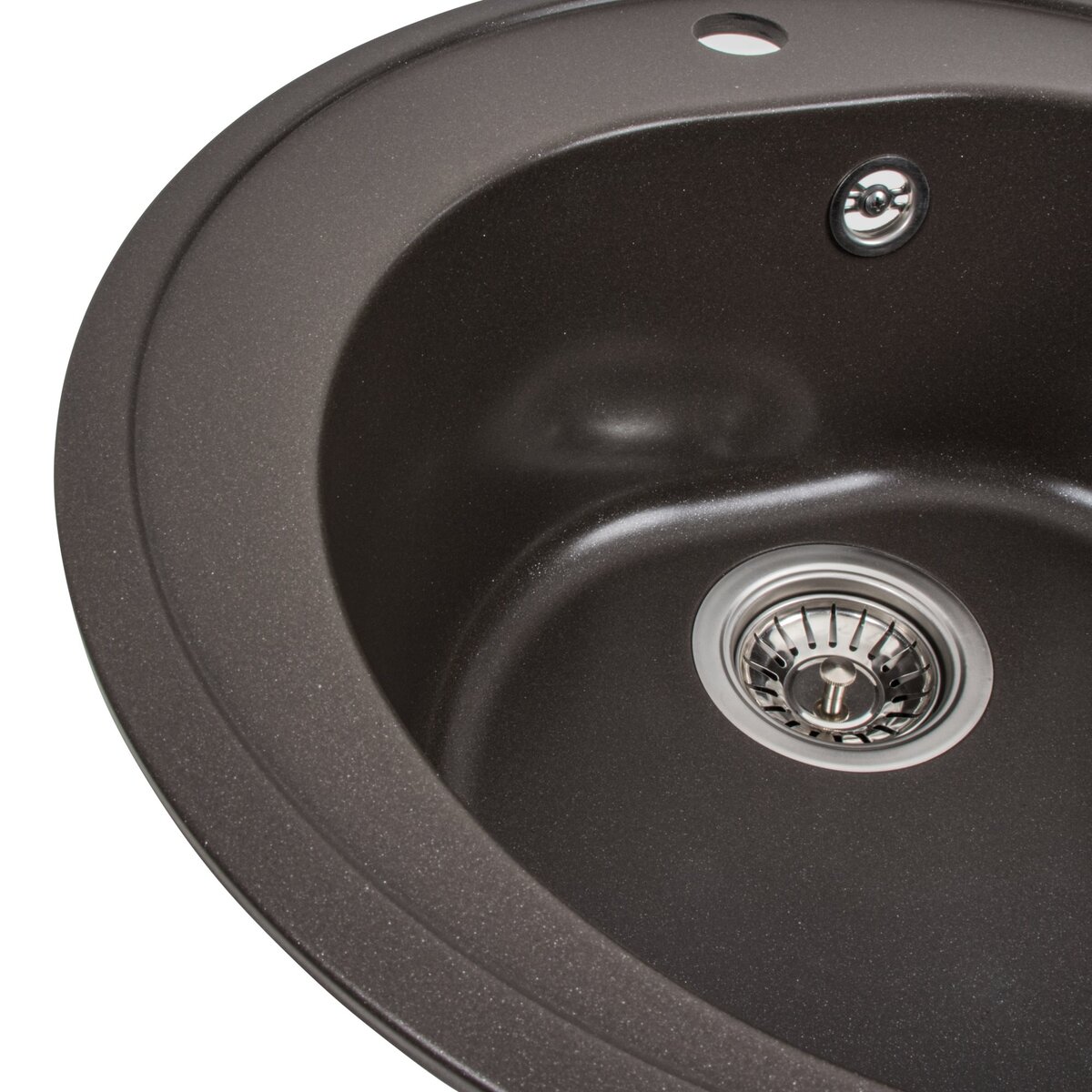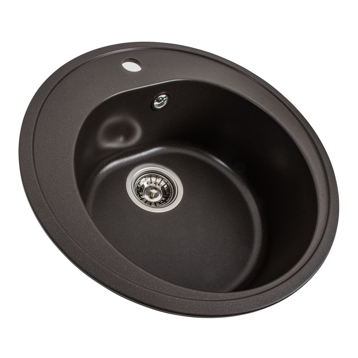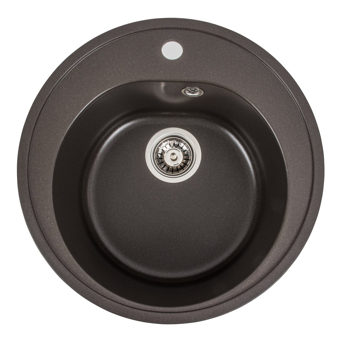Гранітна кухонна мийка Valeso Luna 510×510 врізна, кругла, темна скеля матова (SP000047424)