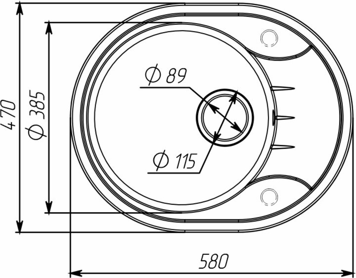 Гранітна мийка Valeso Onyx 580х470 врізна, овальна, матова гренадин3 971 грн