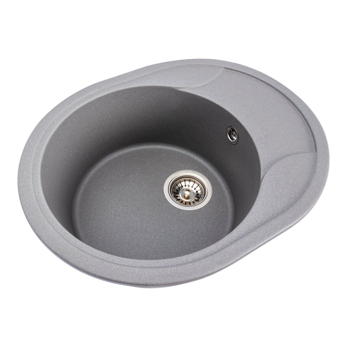 Гранітна кухонна мийка Valeso Onyx 580×470 врізна, овальна, сірий мусон (SP000047417)