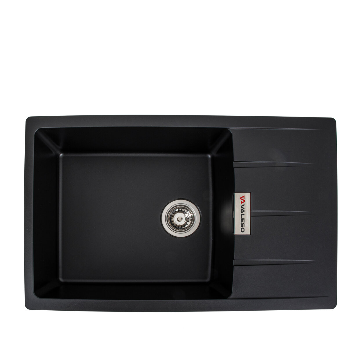 Гранітна кухонна мийка Valeso Roma 780×500 врізна, прямокутна, чорна матова (SP000047097)
