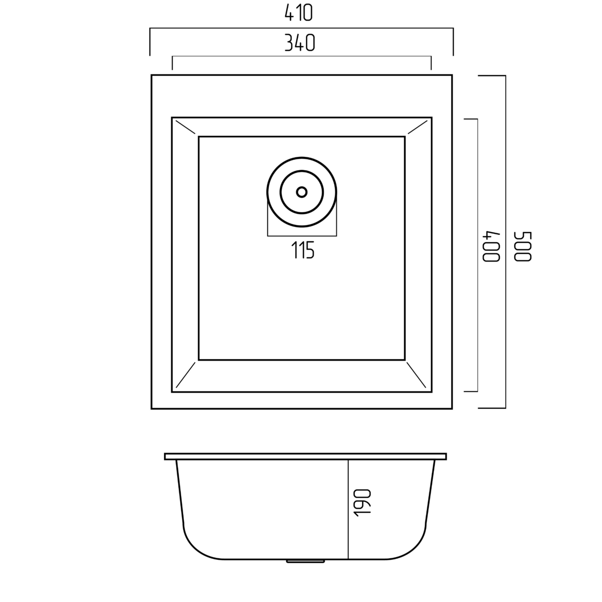 Гранітна мийка Valeso Sokil 410х500 врізна, прямокутна, матовий моріон4 363 грн