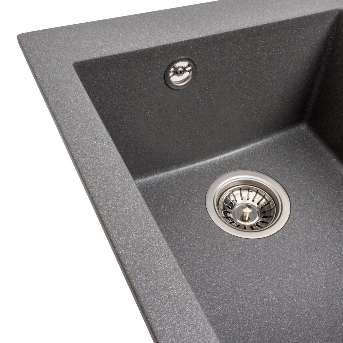 Гранітна кухонна мийка Valeso Sokil 410×500 врізна, прямокутна, сірий мусон (SP000047162)