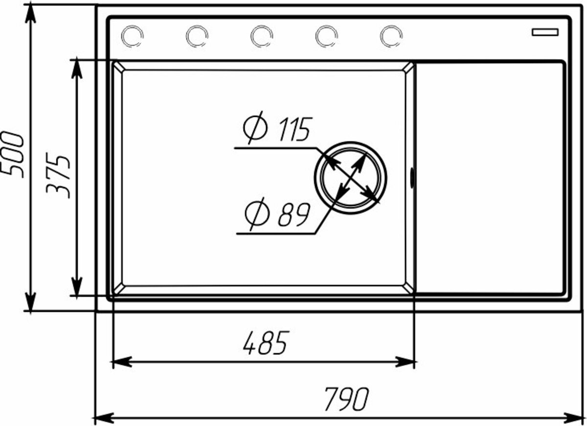 Гранітна мийка для кухні Valeso Azurit 790×500 врізна, прямокутна, карбон матовий (SP000047441)