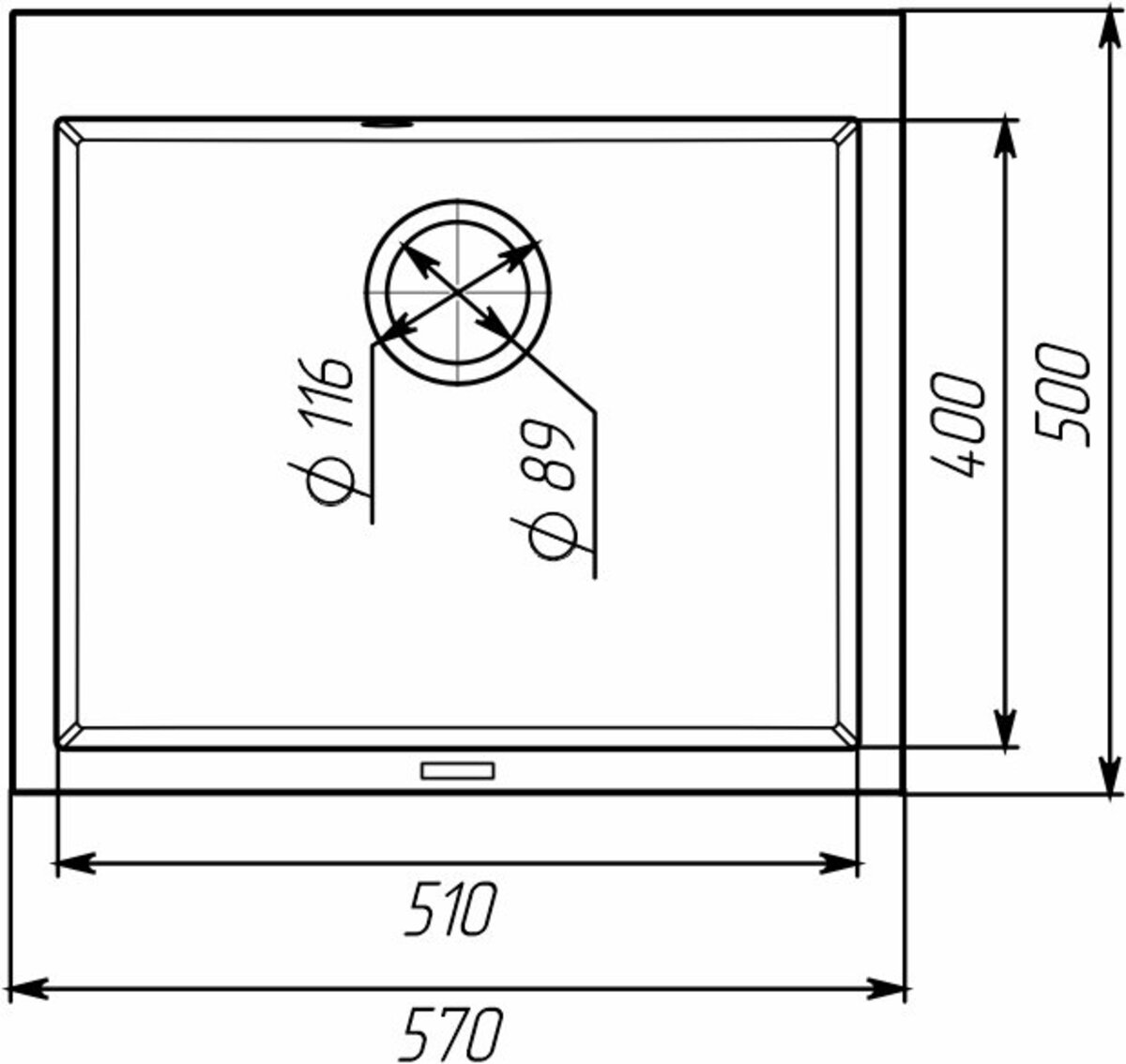 Гранітна мийка для кухні Valeso Davina 570×500 врізна, прямокутна, темна скеля (SP000051477)