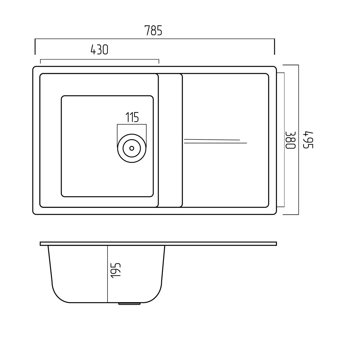 | Діаметр зливу, мм | 115 |