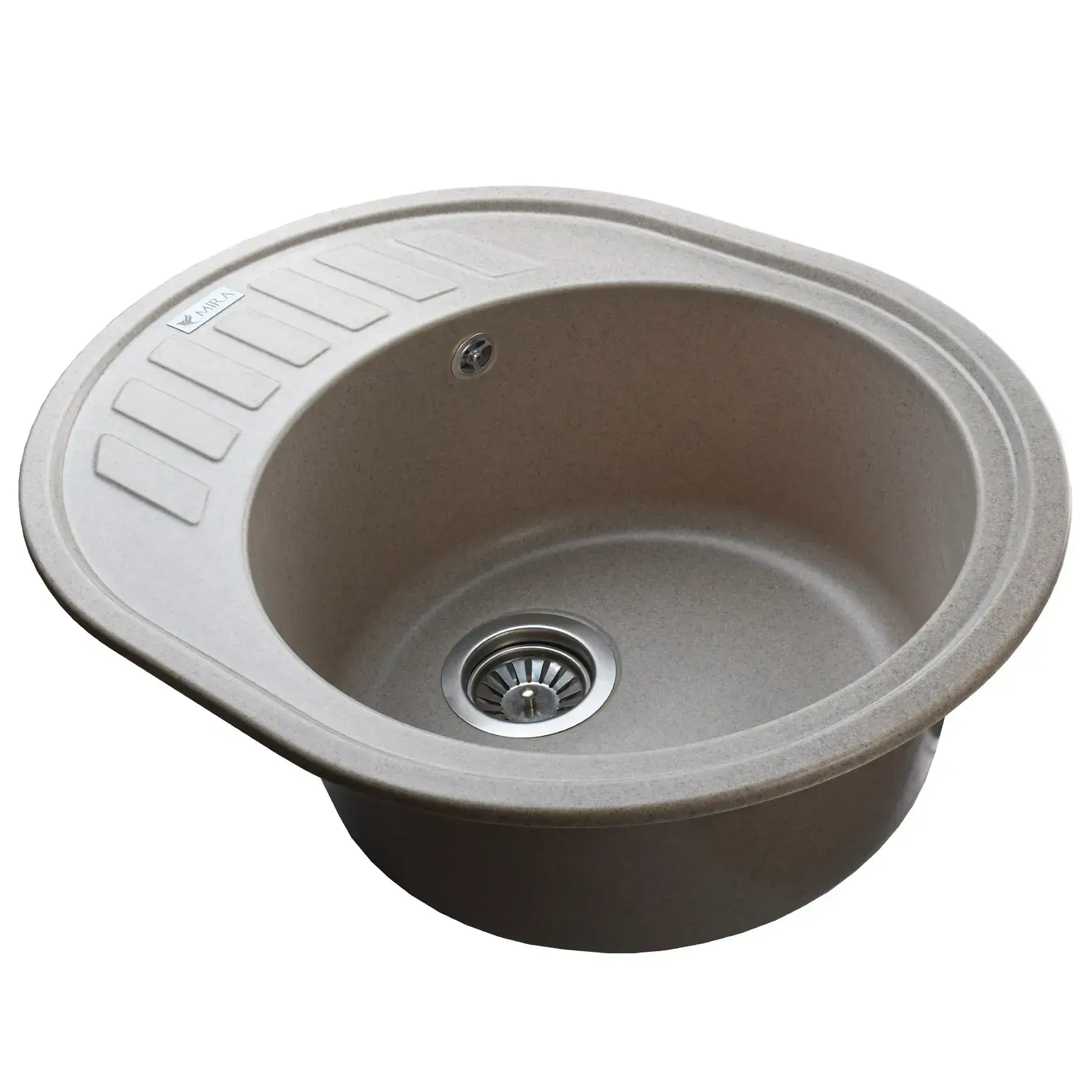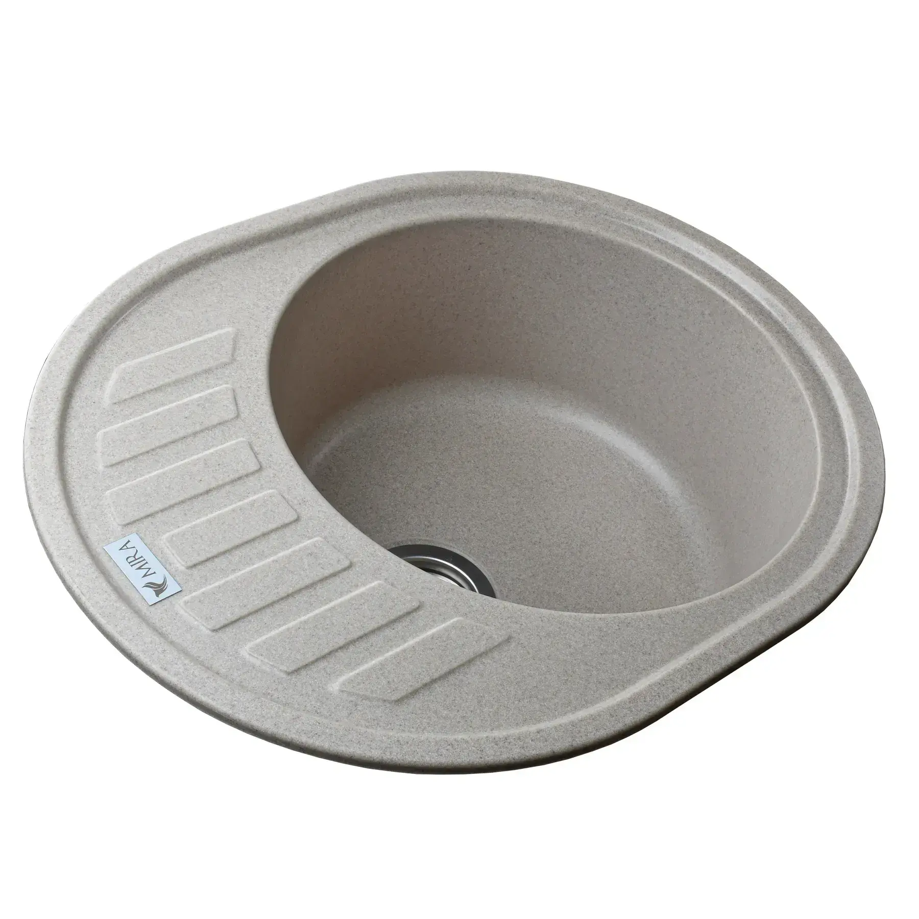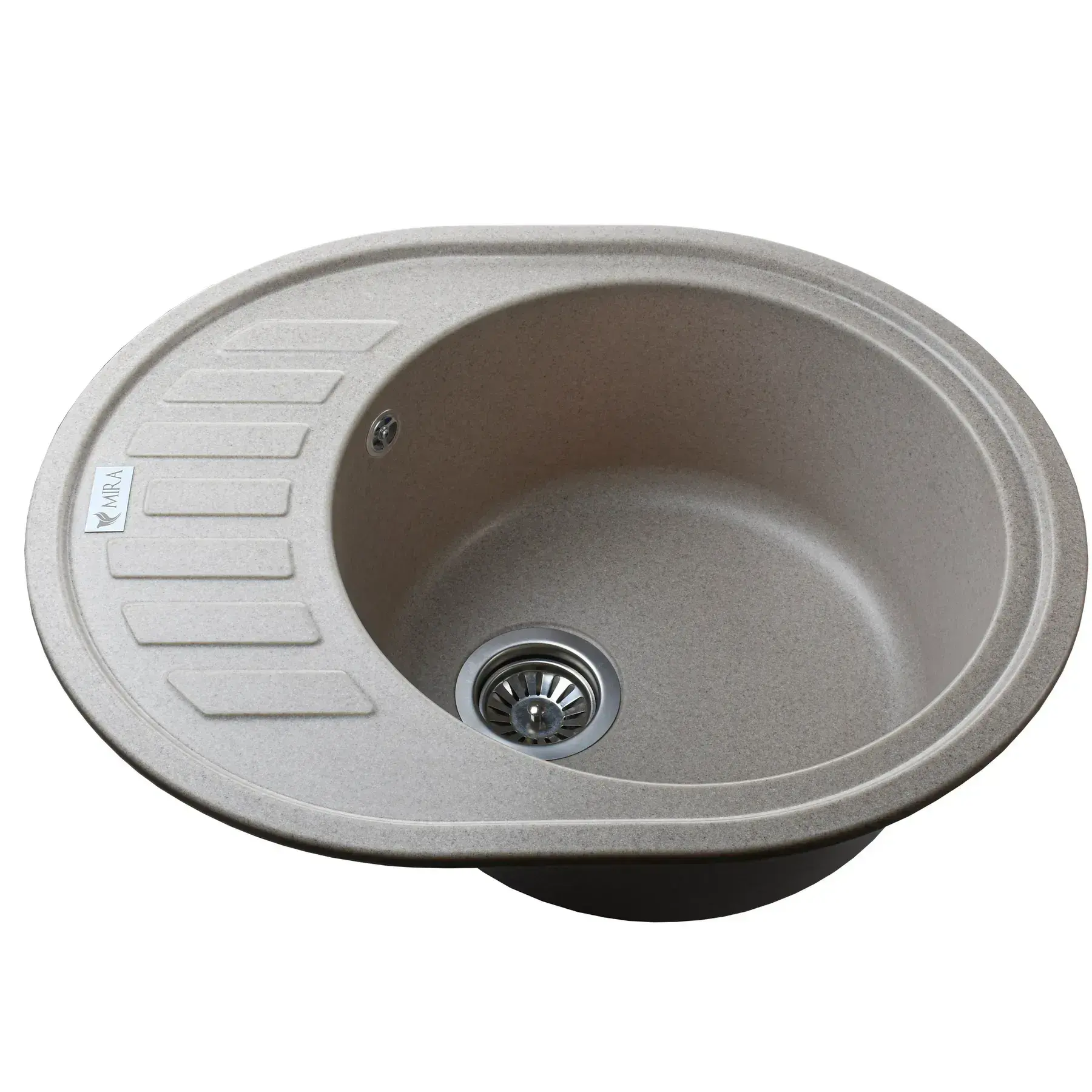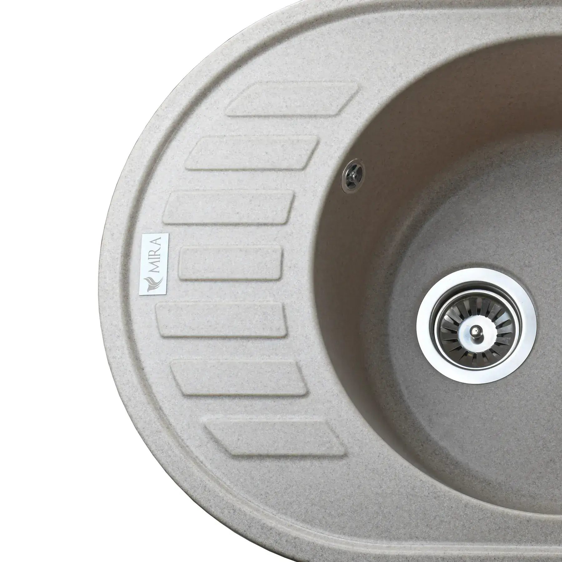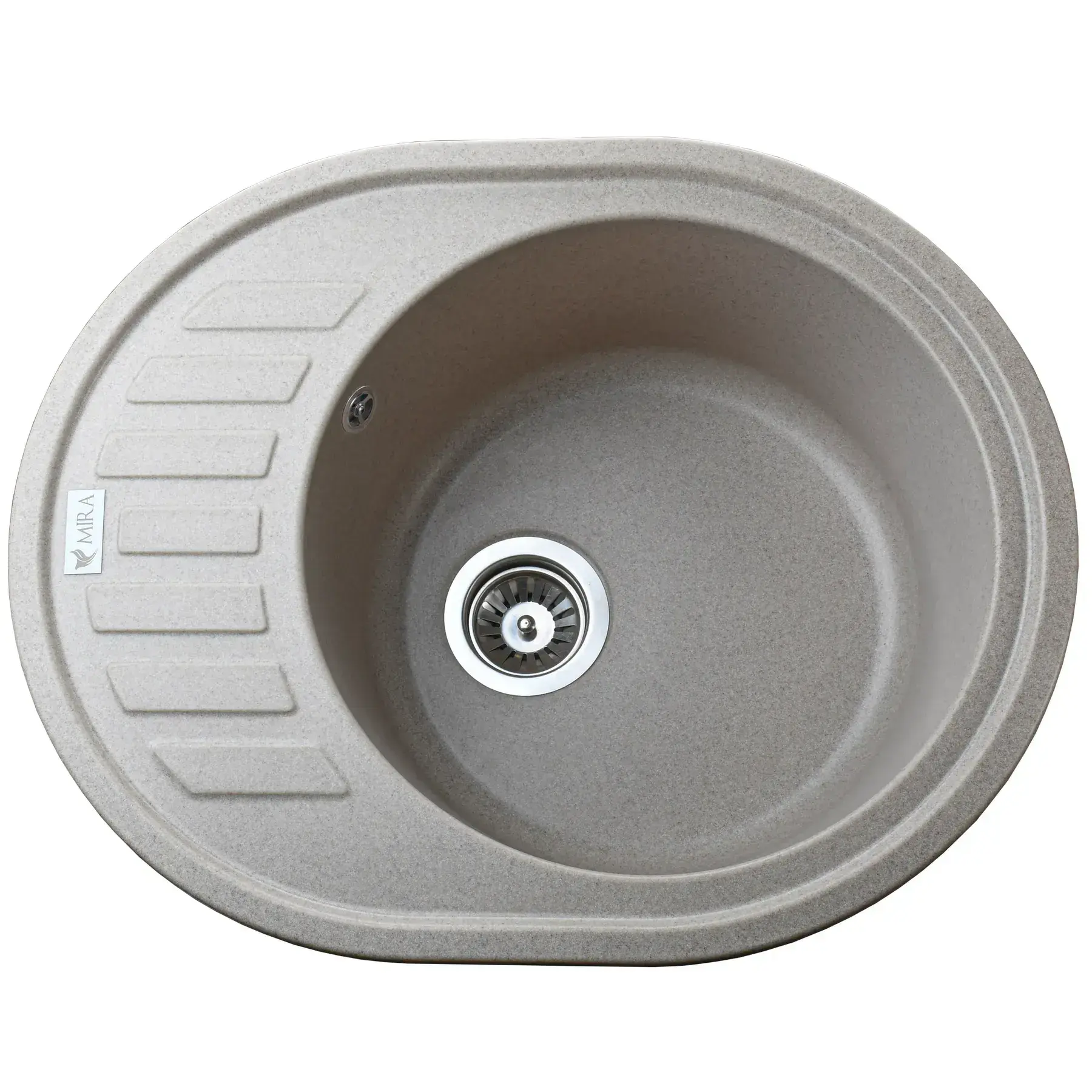 Гранітна мийка Mira Arnica 620×500 накладна, овальна, світло-сіра