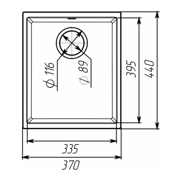Гранітна мийка Valeso Roxy 370х440 врізна, прямокутна, матова темна скеля