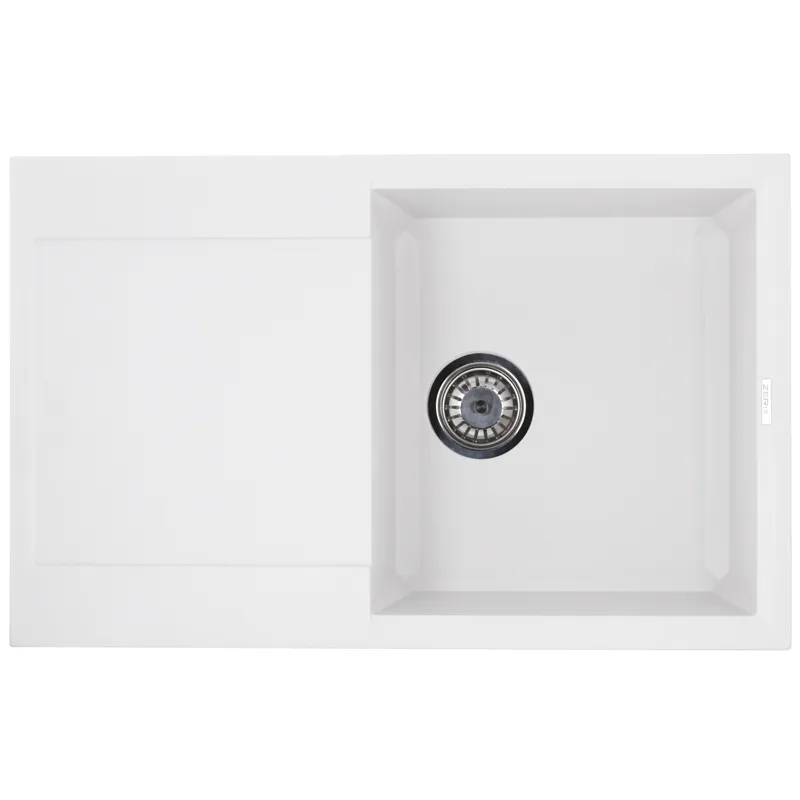 Гранітна мийка Zerix ZS-7950S-01 780×495 врізна, прямокутна, білий матовий (ZX4579)