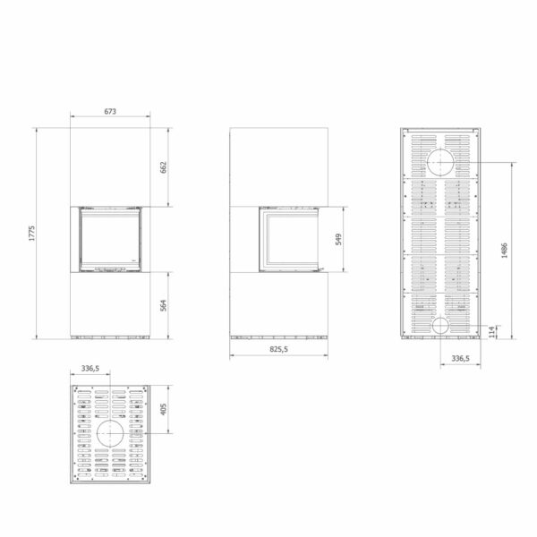 Камін на дровах Kratki NBC 500/500 8 кВт керамограніт, низький, графіт (Ø 200) (5903751250609)