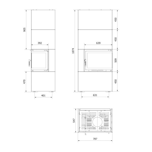 Конфигурация топки | Двостороння, Кутова, Скло в кутку праворуч |