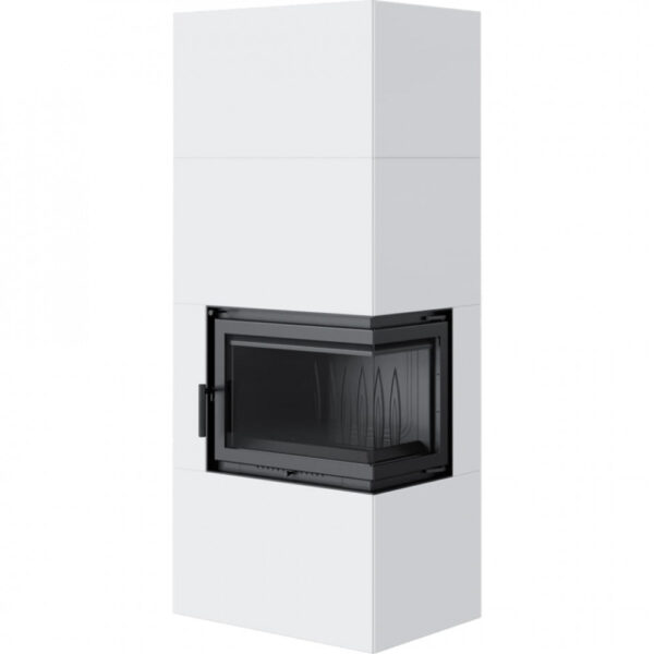 Камін на дровах Kratki SIMPLE 12 BS P 8 кВт сталь, кутовий правий, білий (Ø 200)