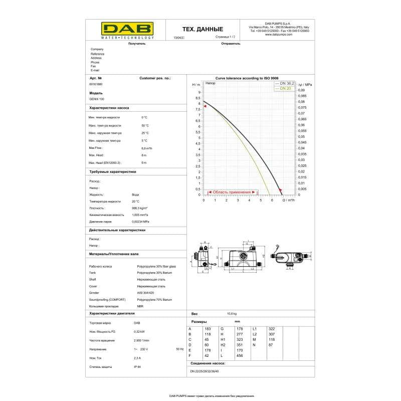 Каналізаційна установка DAB Genix 130 0,32 кВт H 8 м Q 115 л/хв (60161880)