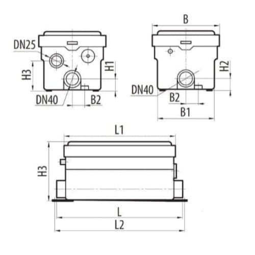 | Діаметр патрубка (вихід) | 32 мм, 40 мм, 25 мм |