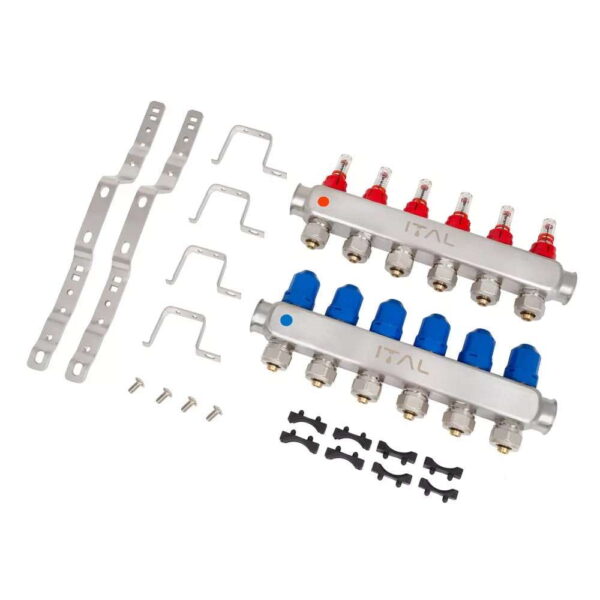 Колектор теплої підлоги ITAL 1″x3/4″ 6 виходів, з витратомірами (HC1-06)