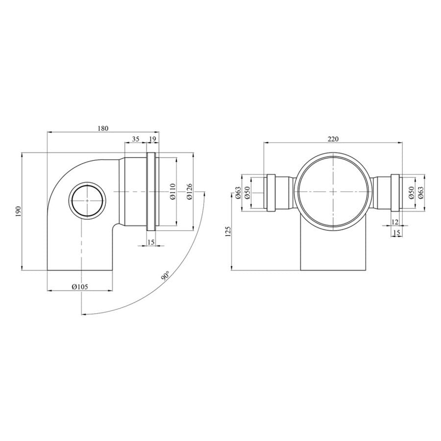 Коліно внутрішньої каналізації Baux 110х50х50 мм 90° двоплощинне (ліве + праве) (CV030944)