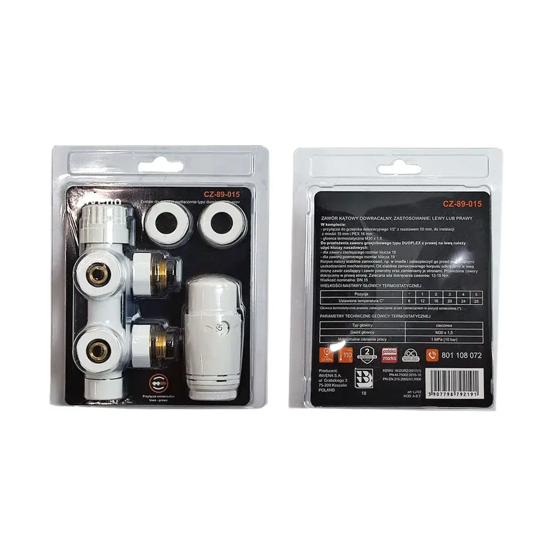 Комплект термостатичний Invena Duoplex 1/2” кутовий, білий