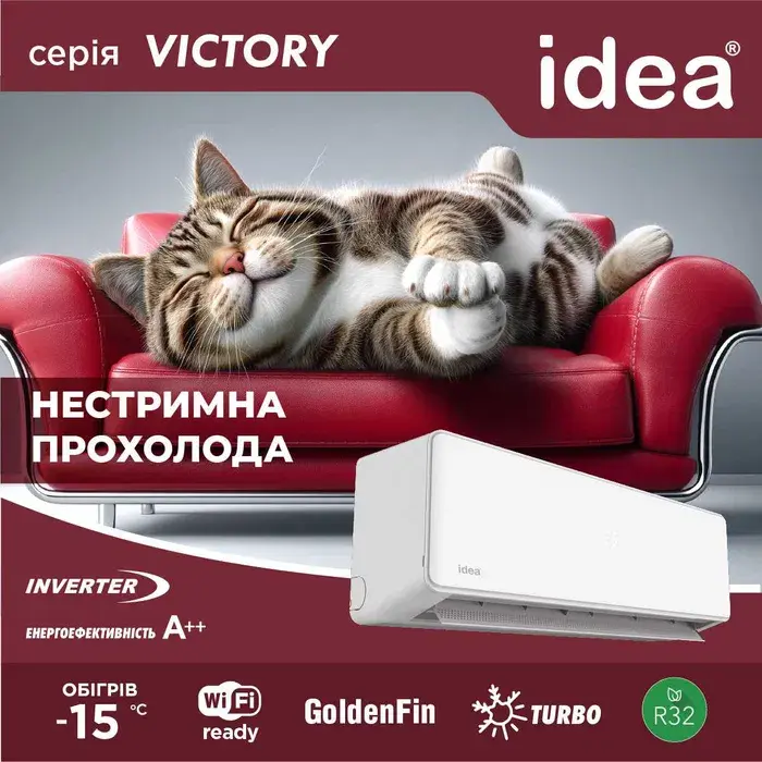 Кондиціонер Idea Victoria ISR-09HR-VI05-DN8 25м2 (-15°С) R32 інверторний, білий + пульт ДК (Wi-Fi Ready)