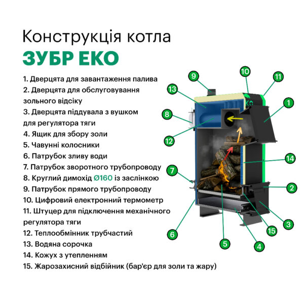 Котел тривалого горіння Zubr Eko 16 кВт 160 м2 з ручним керуванням