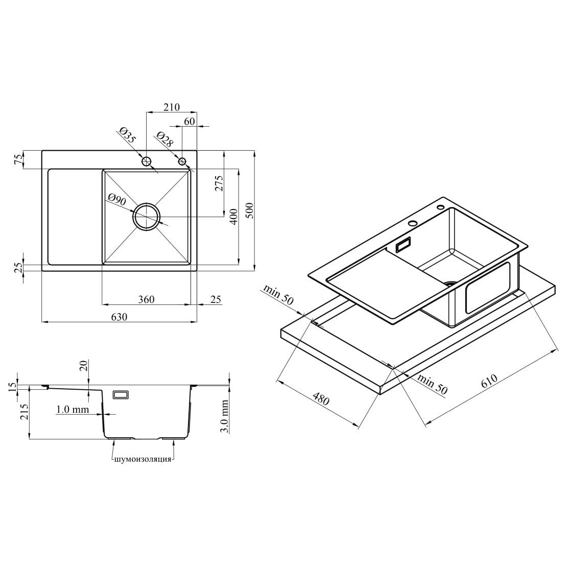| Довжина мийки, мм | 630 |