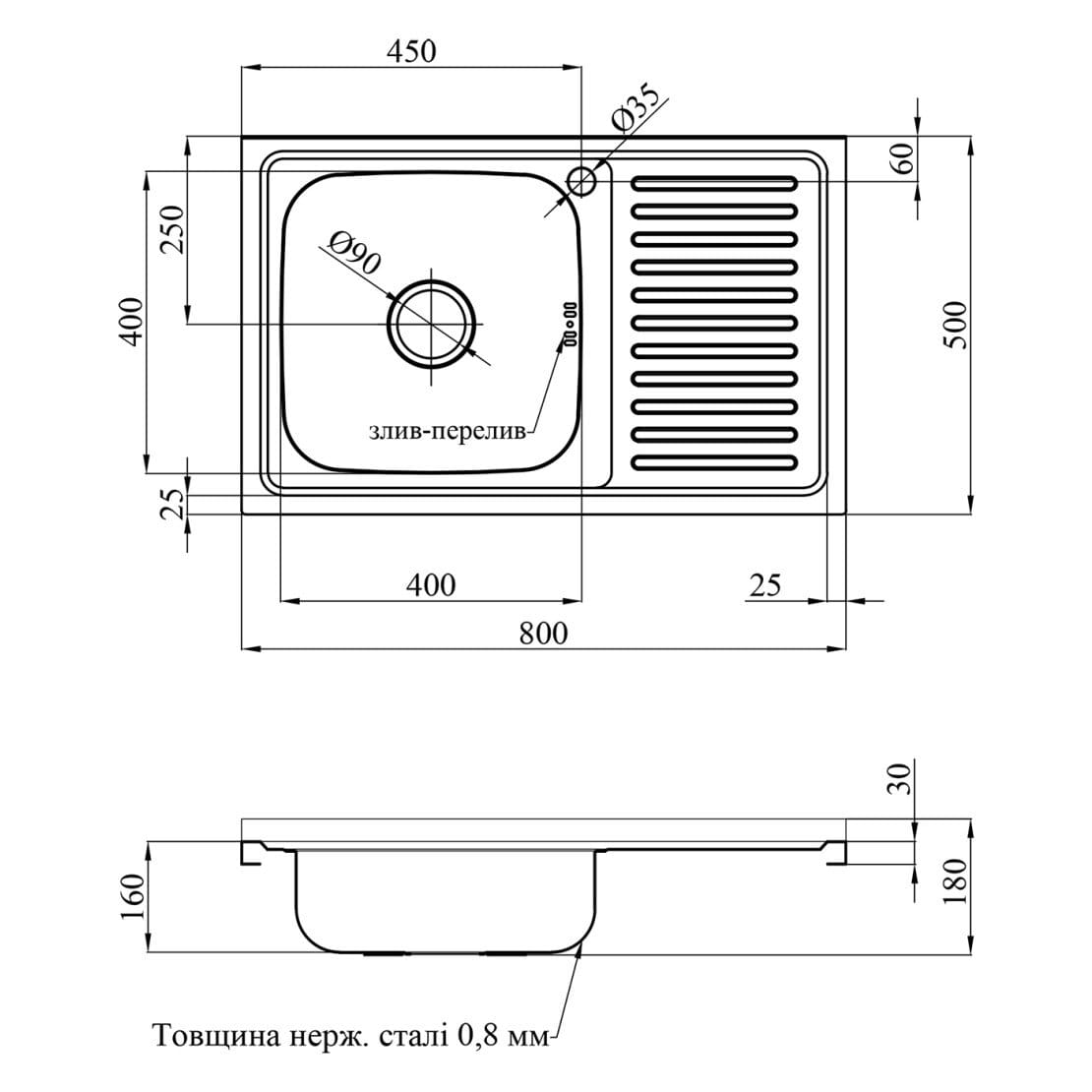 | Товщина матеріалу, мм | 0,8 |