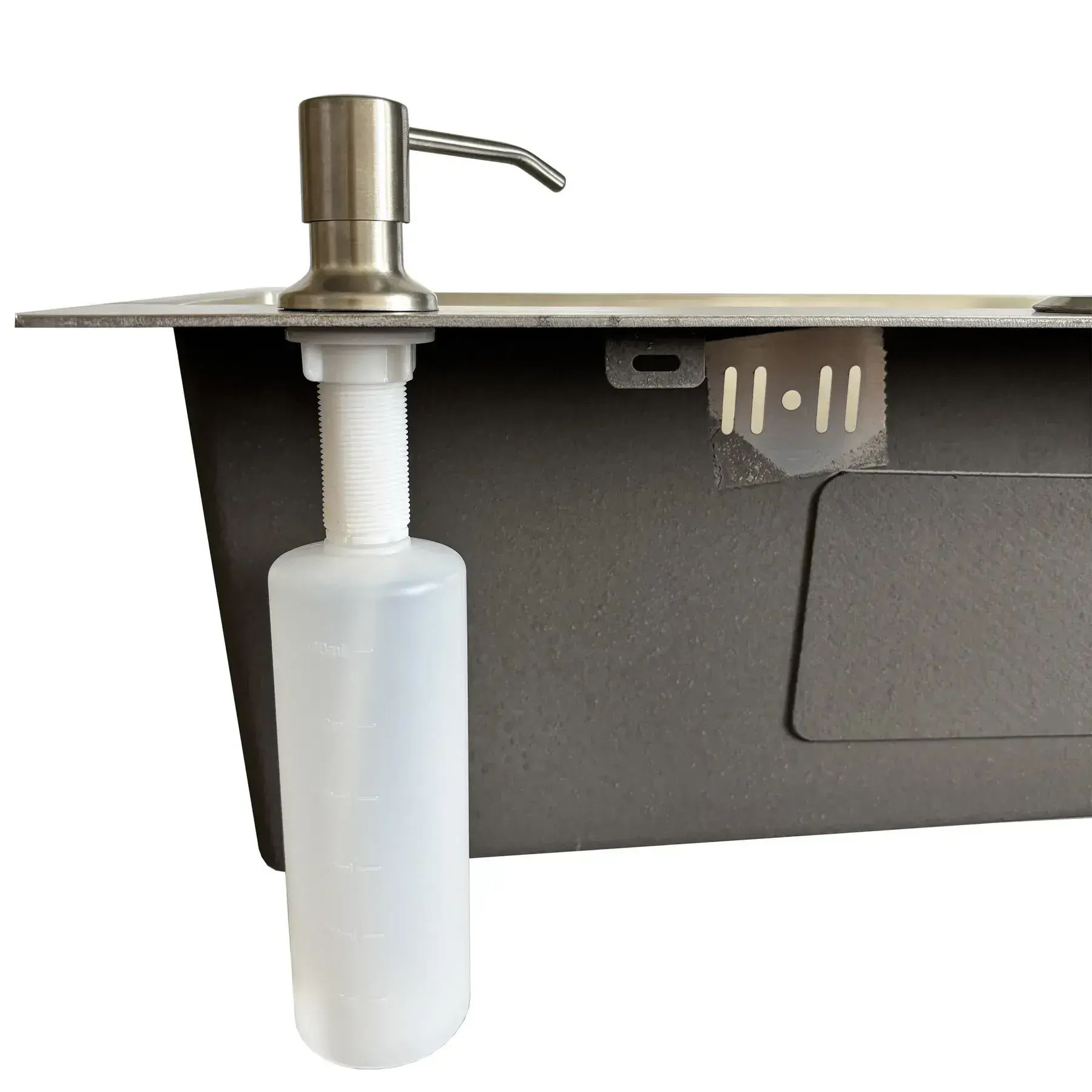 | Комплектація | Інструкція зі встановлення та експлуатації, Комплект кріплень, Кухонна мийка, Сифон, Дозатор рідкого мила |