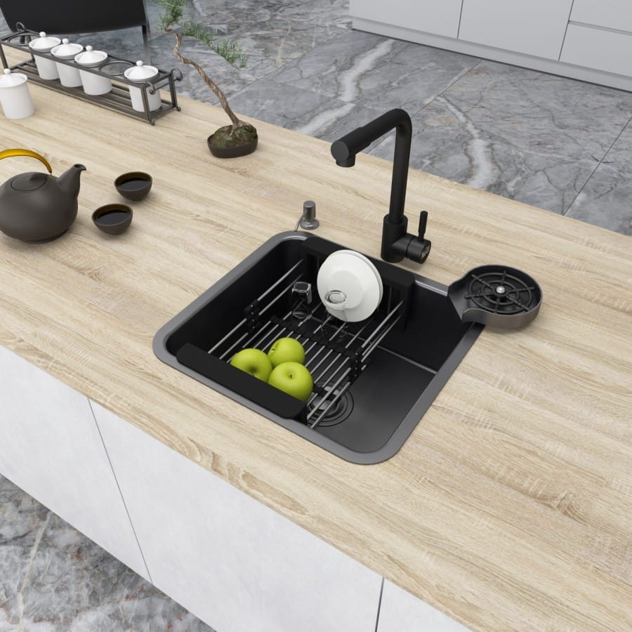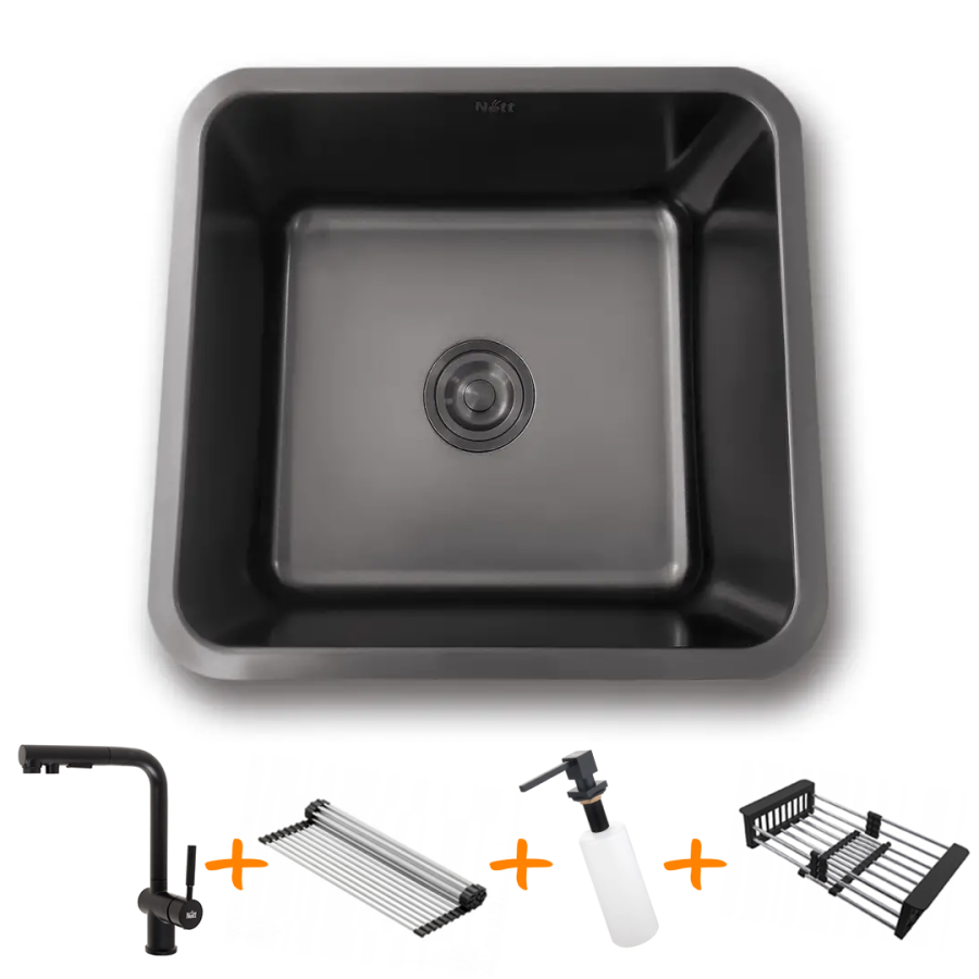 Кухонна мийка Nett NB-4643 460×430 врізна, прямокутна, чорна (1 мм)+змішувач