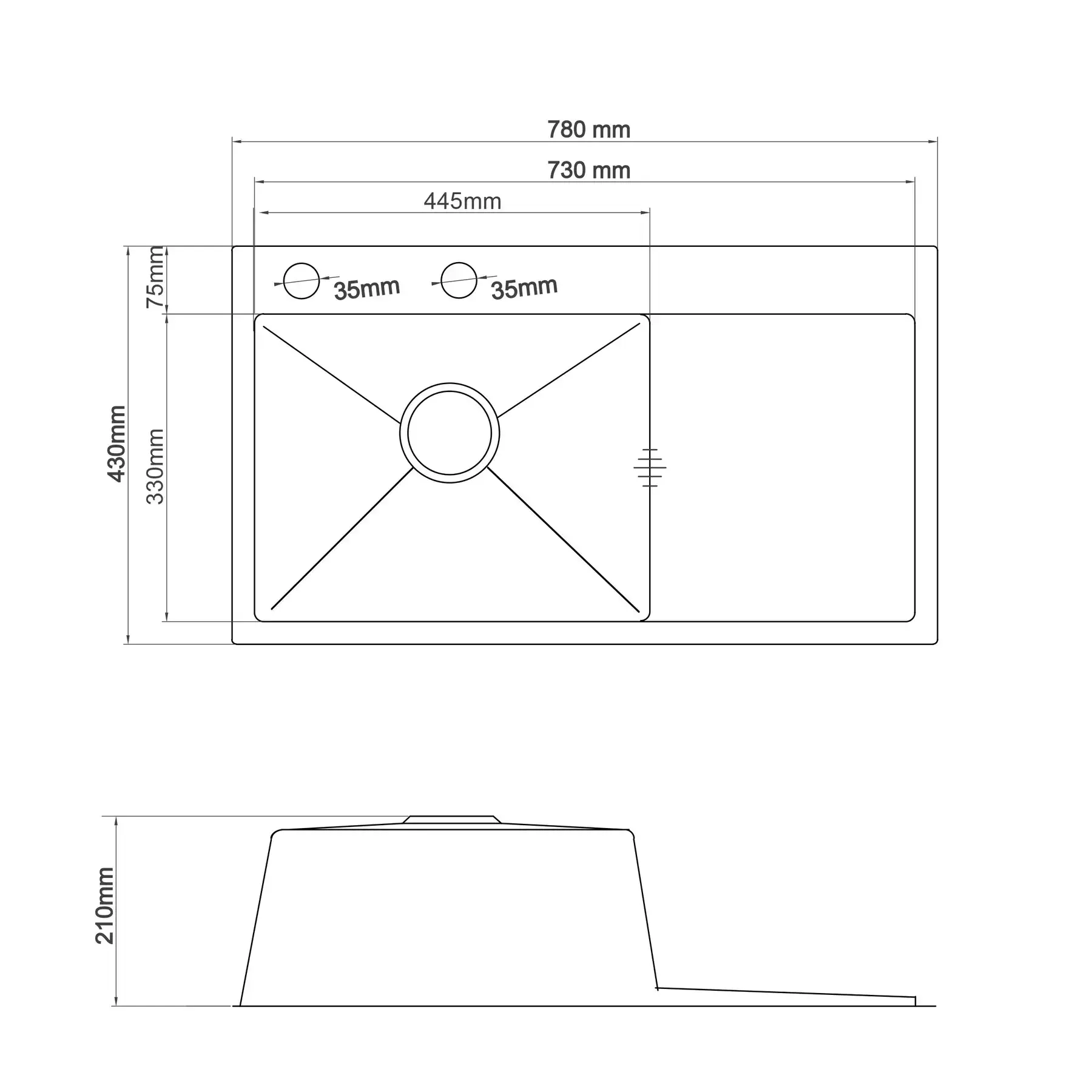 Кухонна мийка з нержавійки MIRA 7843HG 780х430 накладна, прямокутна, графіт (3 мм)